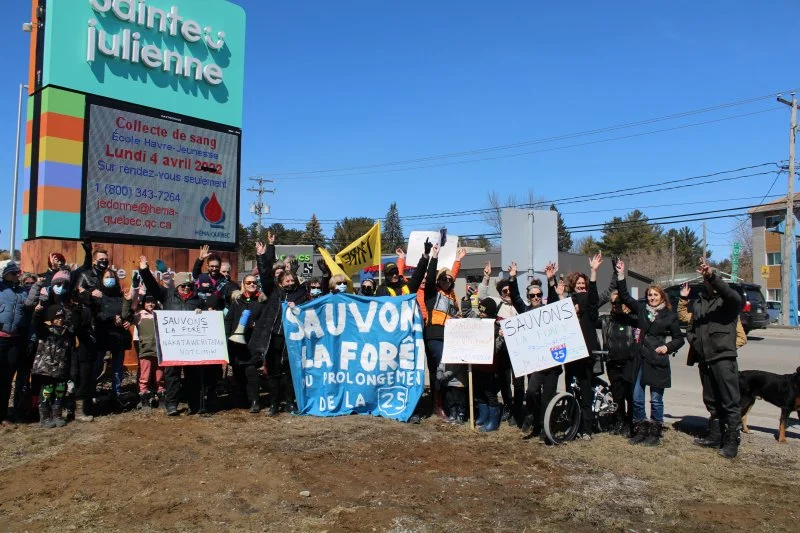 « Le Conseil régional de l'environnement de Lanaudière et le groupe citoyen Sauvons la forêt du prolongement de l'autoroute 25 ont souligné mardi, leur opposition au projet de Québec de prolonger l’A25, en se mobilisant pour une véritable mobilité durable. »